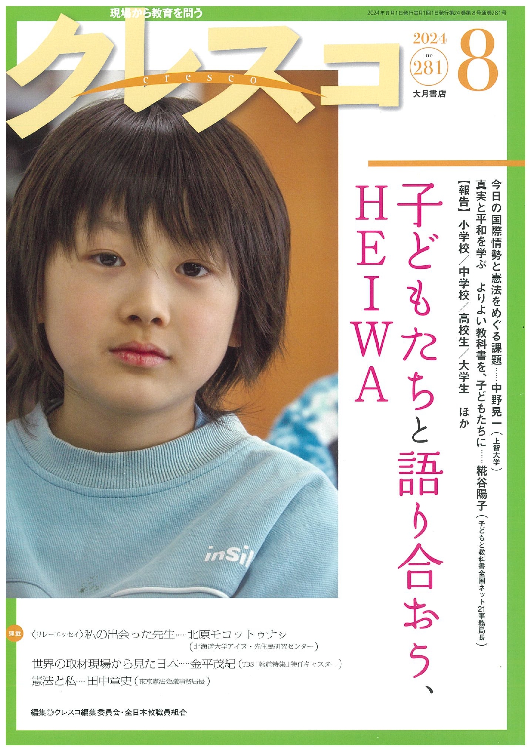 本特集では、全国各地でおこなわれている平和教育の実践や、若者のとりくみなどに学びながら、今日における教育の役割について考え合いたいと思います。