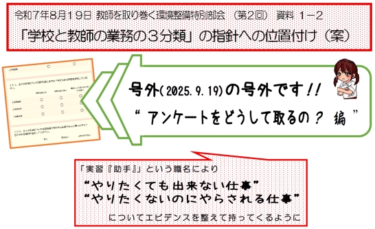 全教実習教員部NEWS-号外20251111・緊急実態調査!~あなたの仕事が⁉~どうして取るの?を発行しました。