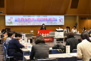 全教女性部は、4月13日~14日の2日間にわたって、第29回総会を開催しました。総会に先立って、1月25日に中教審が答申した「学校における働き方改革」について学習し、教職員の長時間過密労働の解消をめざす運動について理解を深めました。総会では、各地から集まった代議員の熱心な議論を経て、「2018年度たたかいの経過と総括」「2019年度運動方針と当面の行動提起」「2018年度決算及び2019年度予算」を全会一致で可決し、2019年度役員を選出しました。