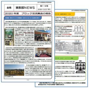 2020年度は、新型コロナウィルス感染症拡大防止のためやむなく次年度へ延期したブロック、オンライン会議を駆使して短時間でも複数回交流したブロック、資料や署名で交流したブロック、感染予防を最大限おこない交流したブロックなど様々なかたちでのブロックの交流をおこないました。