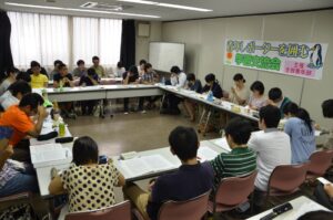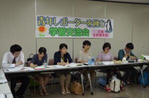 教育のつどい開催前日である8月15日、全教青年部主催の「教育のつどい青年レポーターを囲む学習交流会」を開催され、40名が参加しました。