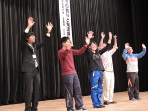 1日目の開会全体会には約600人が参加。オープニングに「ジョイアススクールつなぎ」の劇があり、開会行事の後の現地企画では奈良県障害児学校教職員組合のみなさんの寸劇「組合って」も披露されました。