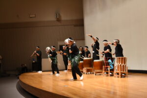 全体会は、地元北九州市に住む12歳以上の知的障害者の劇団「チャンチャン劇団」によるパフォーマンスで幕を開けました。続けて、全教北九州青年部作成の北九州紹介DVDが上映されました。北九州の魅力を発信しつつ、軍都小倉と呼ばれ、戦争中には「70万頭ともいわれる軍馬が戦地へ向けて出港し、1頭も返ってこなかった」事実など、戦争遂行に大きな役割を担わされた歴史を持つ北九州の姿も紹介され、北九州市への理解がぐっと高まりました。