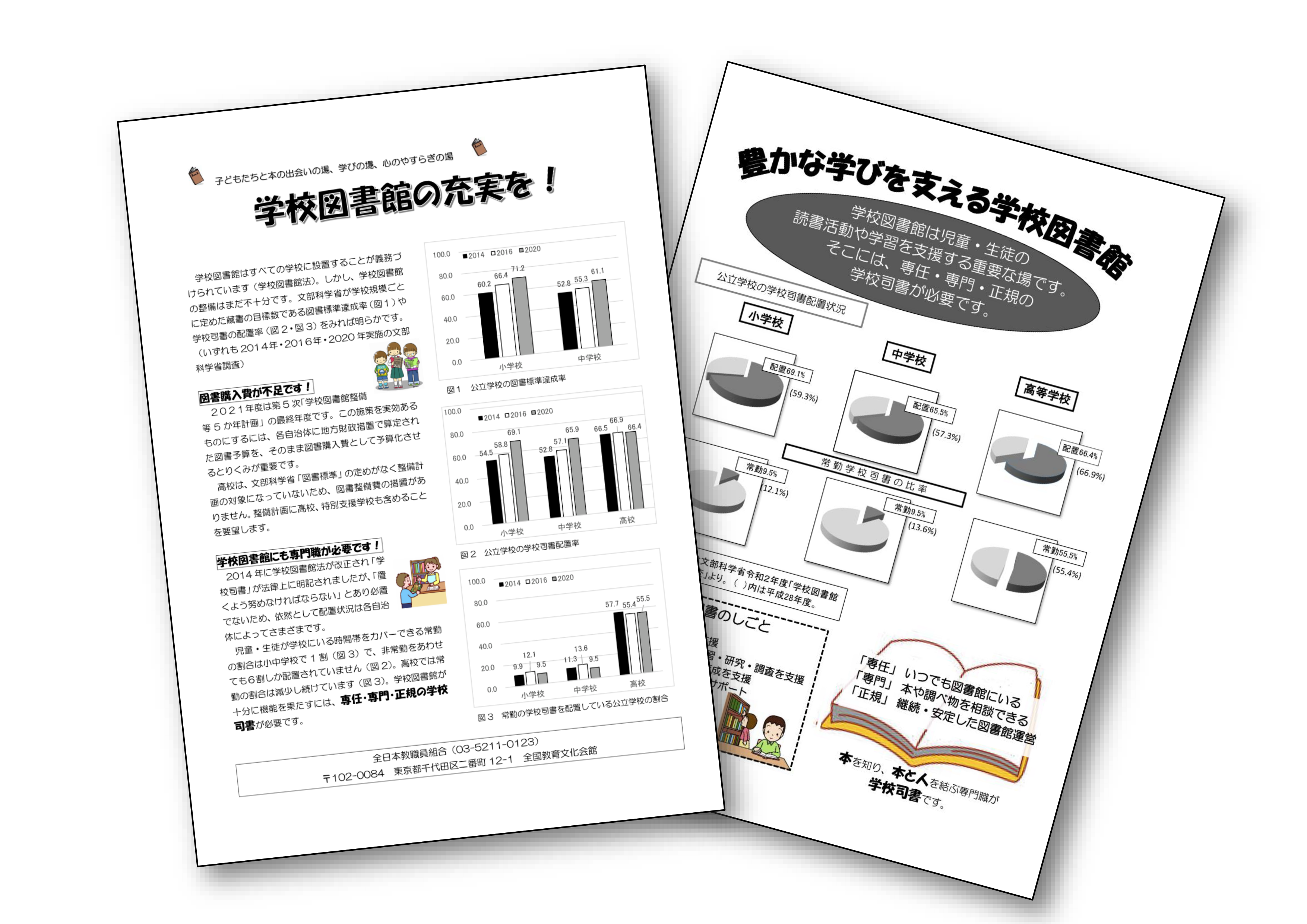 学校司書部では、学校図書館の充実を求め、2つの署名にとりくんでいます。1つは文部科学大臣あての「学校図書館の充実を求める署名」、もう1つは国会にむけた「専任・専門・正規の学校司書の配置を求める請願署名…