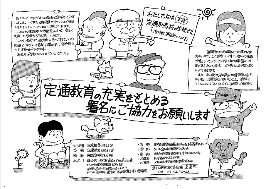 「定時制・通信制教育の充実を求める署名」にご協力ください。全教定通部は毎年、定時制・通信制教育の充実をもとめて署名にとりくんでいます。集めた署名は11月の文科省交渉の時に提出をしています。コロナ禍のも…