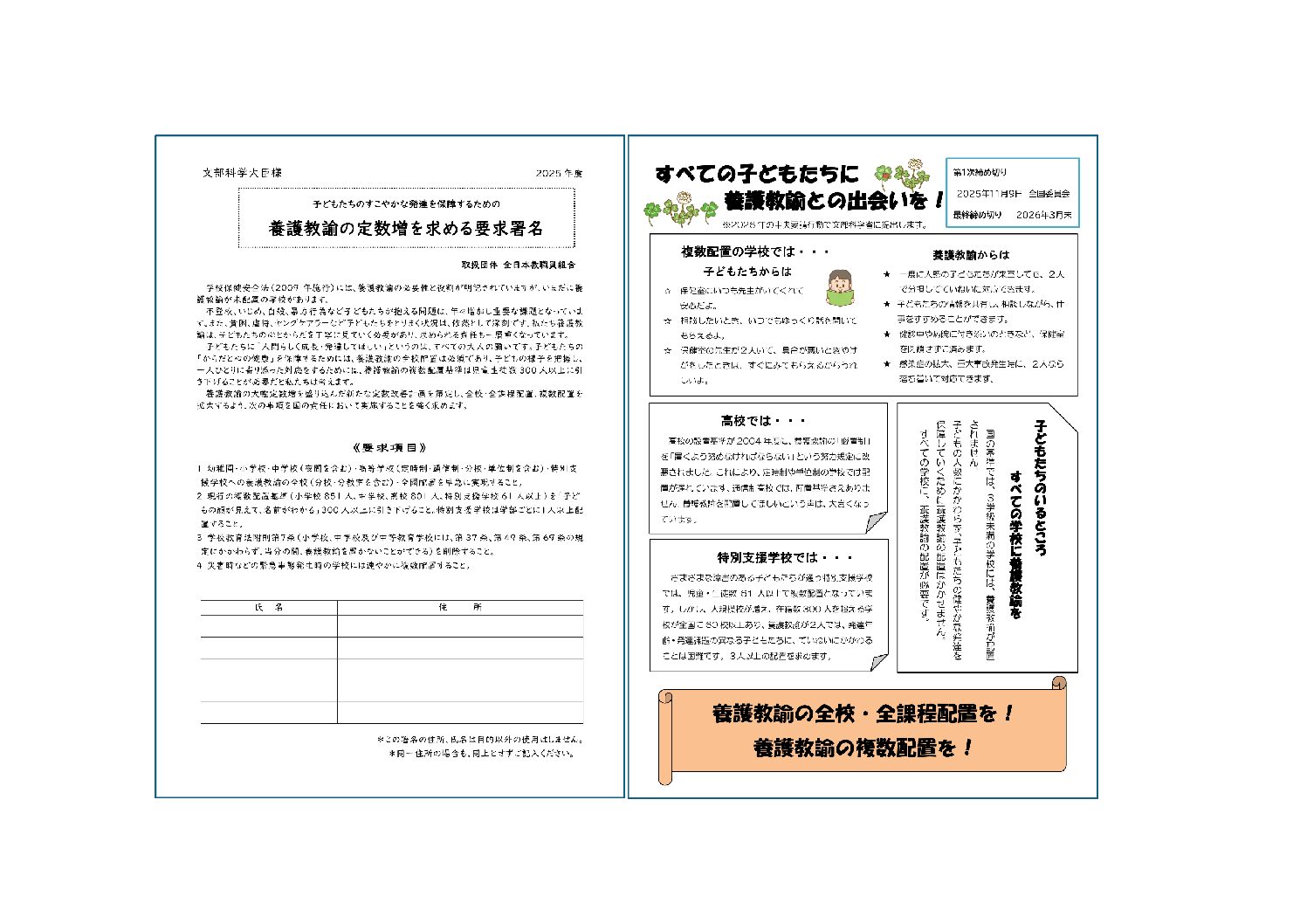 全教養護教員部は、6月13日の定期総会で、すべての学校(園・課程)への養護教諭配置と複数配置の大幅拡大を目指し、今年度も子どもたちのすこやかな発達を保障するための「養護教諭の定数増を求める要求署名」…